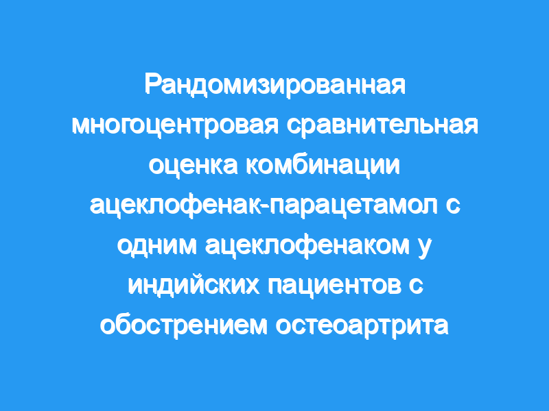 Результаты этого открытого сравнительного исследования с участием индийских пациентов демонстрируют, что комбинация ацеклофенака и парацетамола эффективна и хорошо переносится для облегчения боли при обострении ОА. Комбинация показала быстрое облегчение боли по сравнению с монотерапией, что желательно для таких пациентов, и, следовательно, эта комбинация может сыграть важную роль в лечении острого болезненного обострения ОА.