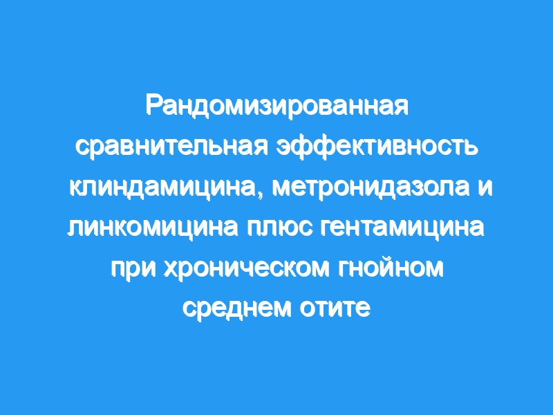 В конце одной недели и трехнедельного наблюдения конечные точки клинический ответ при бактериологическом лечении составил для клиндамицина и гентамицина 21%, метронидазола и гентамицина 33%, линкомицина и гентамицина 22%, а контроль (только слуховой туалет) 14%. Однако, когда клинический ответ измерялся только по прекращению выделения, результат был более впечатляющим.