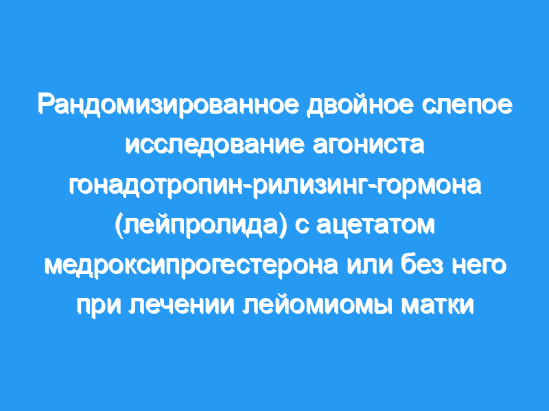 Рандомизированное двойное слепое исследование было проведено на 16 женщинах для сравнения эффективности ежедневных подкожных (SC) инъекций лейпролида ацетата (LA, TAP Pharmaceuticals, North Chicago, IL) плюс пероральных таблеток плацебо (группа A, n = 7) с SC LA плюс пероральный медроксипрогестерона ацетат (The Upjohn Company, Каламазу, Мичиган, группа В, n = 9) при лечении лейомиомы матки.