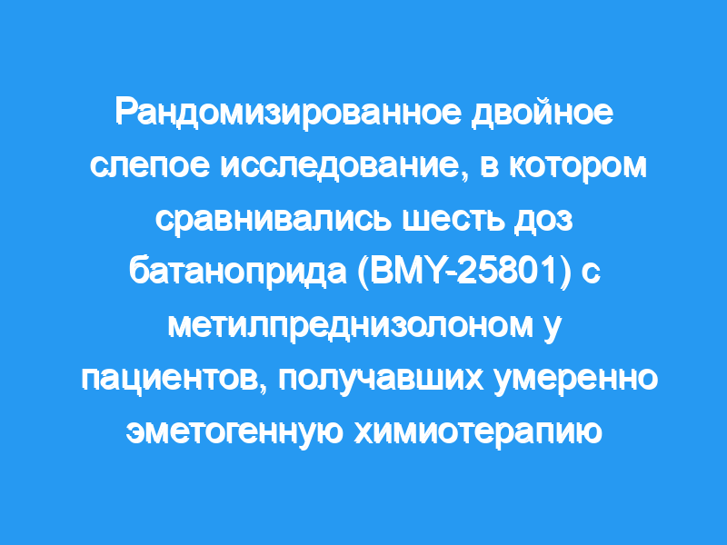 Перед химиотерапией каждая из шести групп пациентов получала однократную внутривенную дозу батаноприда в диапазоне от 0,2 до 6,0 мг/кг, в то время как седьмая группа получала метилпреднизолон в дозе 250 мг внутривенно.