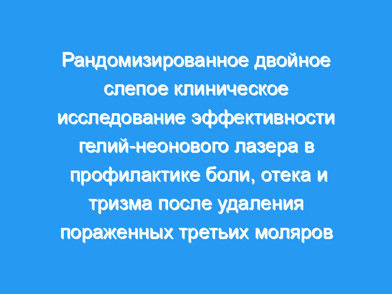 Влияние гелий-неонового (He-Ne) лазера на предотвращение боли, отека и тризма после удаления пораженного третьего моляра было изучено у 100 пациентов, случайным образом распределенных для получения He-Ne лазера, ибупрофена или плацебо в проспективном двойном слепом параллельном клиническом исследовании.