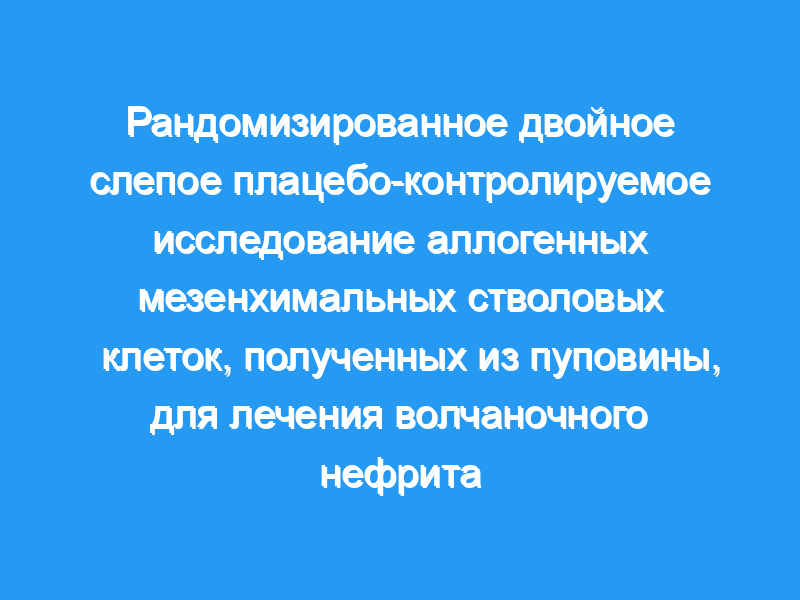 Восемнадцать пациентов с ВН III или IV класса ВОЗ были рандомизированы на hUC-MSC (доза 2×108 клеток) или плацебо. Все пациенты получали стандартное иммуносупрессивное лечение, которое состояло из внутривенного введения метилпреднизолона и циклофосфамида с последующим поддерживающим пероральным приемом преднизолона и микофенолата мофетила.