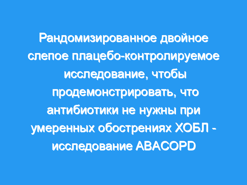 Устойчивые к антибиотикам штаммы патогенных бактерий все чаще встречаются в больницах и общинах. Острые обострения ХОБЛ (АЕ-ХОБЛ) часто приводят к назначению антибиотиков, хотя более половины обострений связаны с обнаружением респираторных вирусов, а потенциально патогенные бактерии могут быть обнаружены только в 20-30% случаев. Существует мало плацебо-контролируемых клинических испытаний, и до сегодняшнего дня ни одно исследование не было проведено в достаточной степени, чтобы доказать эффективность лечения антибиотиками при АЕ-ХОБЛ. Большинство исследований до сих пор не включали современные стандарты лечения, включающие введение системных кортикостероидов. Методы/дизайн: в общей сложности 980 пациентов с умеренными обострениями будут включены в 22 немецких центра (больницы и частные практики). Пациенты будут получать стандартное лечение при обострении, включающее системные кортикостероиды, ингаляционные бронходилататоры и дополнительный кислород, если это необходимо, и будут рандомизированы на дополнительное лечение плацебо или антибиотиком (пероральный сультамициллин) в течение пяти дней.Первичной конечной точкой является клиническая неудача, определяемая необходимостью дополнительного лечения антибиотиками до 30-го дня. Вторичные конечные точки гарантируют, что лечение АЭ-ХОБЛ без антибиотиков не приведет ни к увеличению частоты рецидивов, ни к новым обострениям, ни к длительному выздоровлению, ни к нежелательным долгосрочным последствиям.