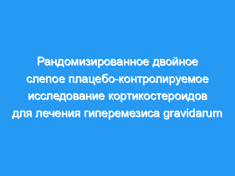 Оценить эффективность кортикостероидов при лечении тяжелой гиперемезии gravidarum, рефрактерной к традиционному лечению. Дизайн: Многоцентровое двойное слепое рандомизированное плацебо-контролируемое исследование.