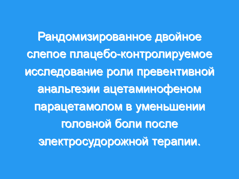 Электросудорожная терапия (ЭСТ) является безопасным и эффективным методом лечения ряда тяжелых психических расстройств, но ее применение ограничено побочными эффектами. Головная боль после ЭСТ — один из самых распространенных побочных эффектов. Упреждающая анальгезия эффективна при послеоперационном обезболивании. Наиболее часто используемым анальгетиком является ацетаминофен (парацетамол). Однако применение ацетаминофена в качестве превентивного анальгетика при постэктатической головной боли недостаточно изучено. Это исследование было проведено для сравнения частоты и тяжести головной боли после ЭСТ у пациентов, которым до ЭСТ вводили ацетаминофен, с группой плацебо.