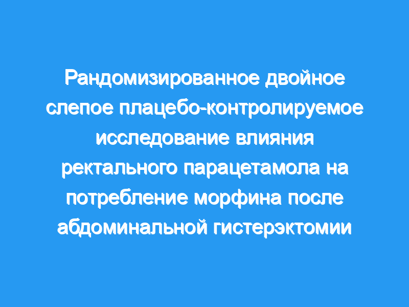Парацетамол широко используется для послеоперационной анальгезии. Эффект хорошо документирован при незначительных и умеренных обширных операциях, но эффект парацетамола в качестве дополнения к опиоидам при крупных операциях на брюшной полости изучен меньше. Семьдесят восемь пациенток, которым была запланирована плановая, доброкачественная и абдоминальная гистерэктомия, были включены в проспективное, рандомизированное, двойное слепое, параллельное групповое, плацебо-контролируемое исследование для оценки эффекта ректального парацетамола в сочетании с внутривенной контролируемой пациентом анальгезией (PCA) морфина. Парацетамол в дозе 1000 мг или плацебо в суппозиториях вводили четыре раза в день в течение 60-часового периода исследования. Внутривенно вводили морфин с помощью помпы PCA, ограничивая дозу максимум 12 мг в час. 1. Были зарегистрированы потребление морфина, боль и побочные эффекты, связанные с морфином. Одноточечный анализ включал определение сывороточных концентраций парацетамола и морфина.