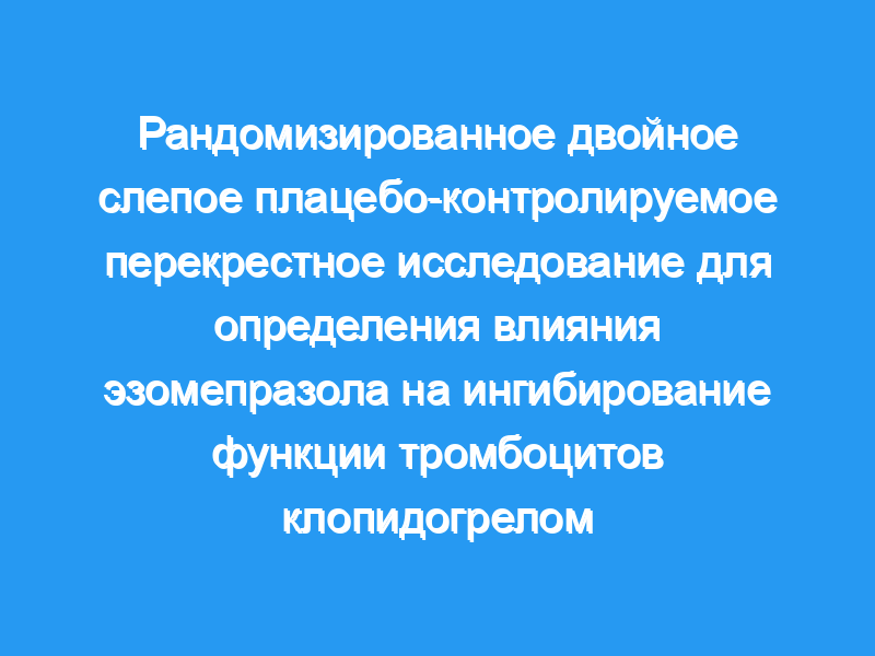Определить, снижает ли добавление эзомепразола к пациентам, получающим аспирин и клопидогрел, антитромбоцитарные эффекты клопидогрела. Пациент/методы: Были набраны пациенты с острым коронарным синдромом в анамнезе, которые ранее получали клопидогрел. Пациенты были начаты на клопидогреле и рандомизированы в одну из двух групп лечения (эзомепразол или плацебо) в течение 6 недель. После 2-недельного периода вымывания исследуемых препаратов пациенты были переведены на альтернативное лечение еще на 6 недель. Тесты на функцию тромбоцитов были проведены в исходном состоянии, после первого периода лечения, после вымывания и после второго периода лечения.