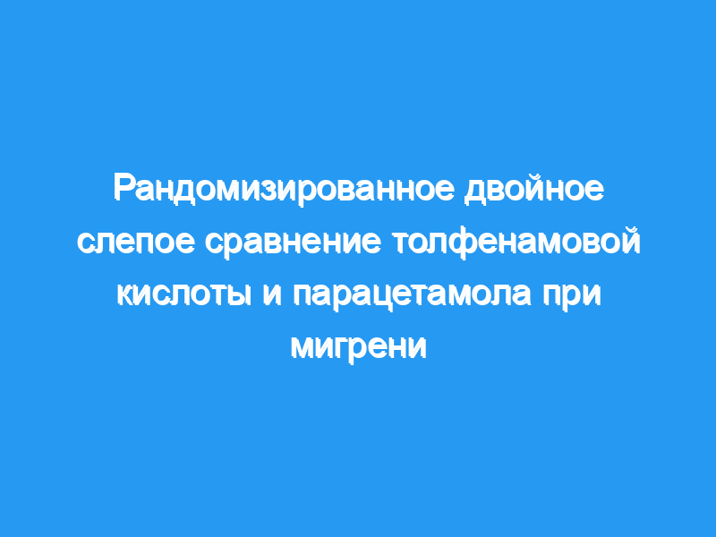 В двойном слепом перекрестном исследовании мы сравнили толфенамовую кислоту с парацетамолом у амбулаторных пациентов с обычной мигренью (мигренью без ауры). Каждого пациента лечили во время (по крайней мере) 4 приступов одним из следующих вариантов: толфенамовая кислота 200 мг, толфенамовая кислота 400 мг, парацетамол 500 мг или парацетамол 1000 мг в рандомизированной последовательности.
