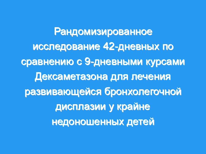 42-дневный сокращенный курс дексаметазона у крайне недоношенных детей с высоким риском развития бронхолегочная дисплазия снизила госпитальную заболеваемость и увеличила выживаемость без инвалидности по сравнению с протоколом лечения, который пытался свести к минимуму воздействие стероидов.