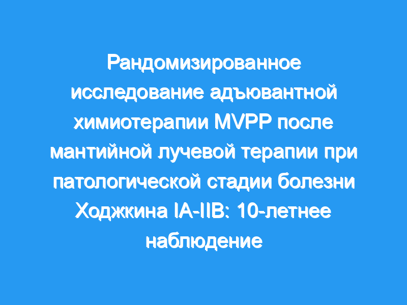 Сто пятнадцать нелеченных пациентов с наддиафрагмальной патологической стадией (PS) IA-IIB болезнью Ходжкина (HD) были включены в рандомизированное исследование, в котором сравнивалось лечение с использованием мантийной лучевой терапии с последующим адъювантным лечением мустином, винбластином, преднизолоном и прокарбазином (MVPP) и только мантийной лучевой терапией.