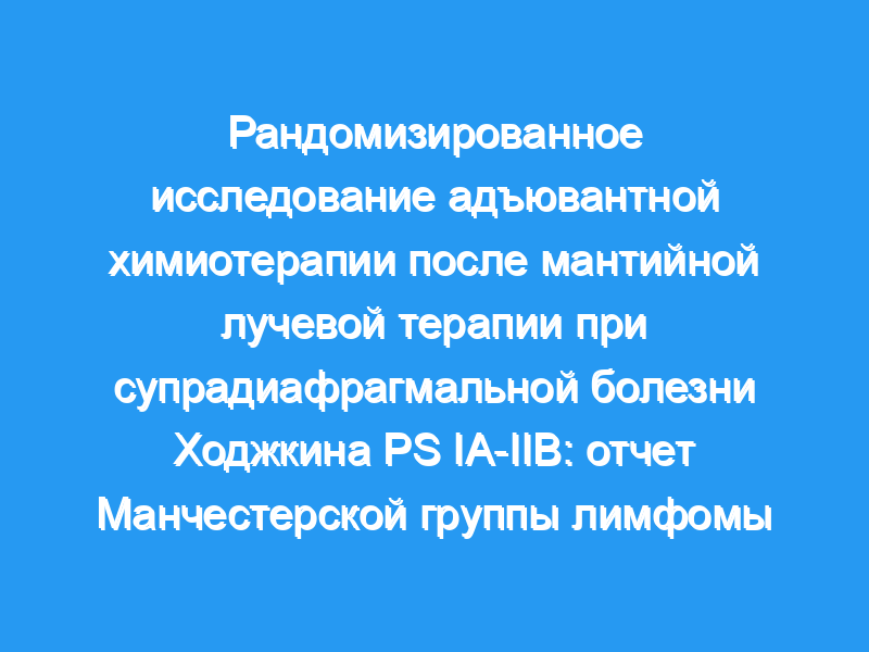 Сто четырнадцать нелеченных пациентов с патологической стадией (PS) IA-IIB супрадиафрагмальной болезни Ходжкина были рандомизированы для проведения только мантийной лучевой терапии (55) или мантийной лучевой терапии с последующим проведением 6 курсов адъювантной химиотерапии с мустином, винбластином, преднизолоном и прокарбазином- MVPP (59). Исключенными были пациенты вне возрастного диапазона 16-65 лет и пациенты с массивным заболеванием средостения, исключающим лапаротомию.