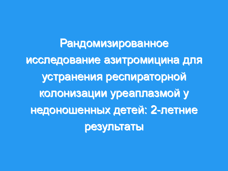 Оценить потенциальное влияние лечения азитромицином в первую неделю после рождения на 2-летние исходы у недоношенных детей с колонизацией дыхательных путей уреаплазмой и без нее, которые участвовали в двойном слепом плацебо-контролируемом рандомизированном контролируемом исследовании.