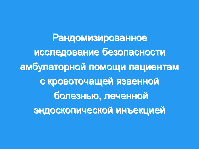 Амбулаторное лечение безопасно для пациентов с не варикозным кровотечением из верхних отделов желудочно-кишечного тракта, у которых низкий риск повторного кровотечения и смерти. Однако многим пациентам амбулаторная помощь не может быть оказана из-за наличия факторов риска (тяжелые сопутствующие заболевания, серьезные эндоскопические признаки кровотечения, значительные кровоизлияния). В настоящем исследовании оценивалась безопасность амбулаторного ведения отобранных пациентов высокого риска с кровоточащей язвенной болезнью.