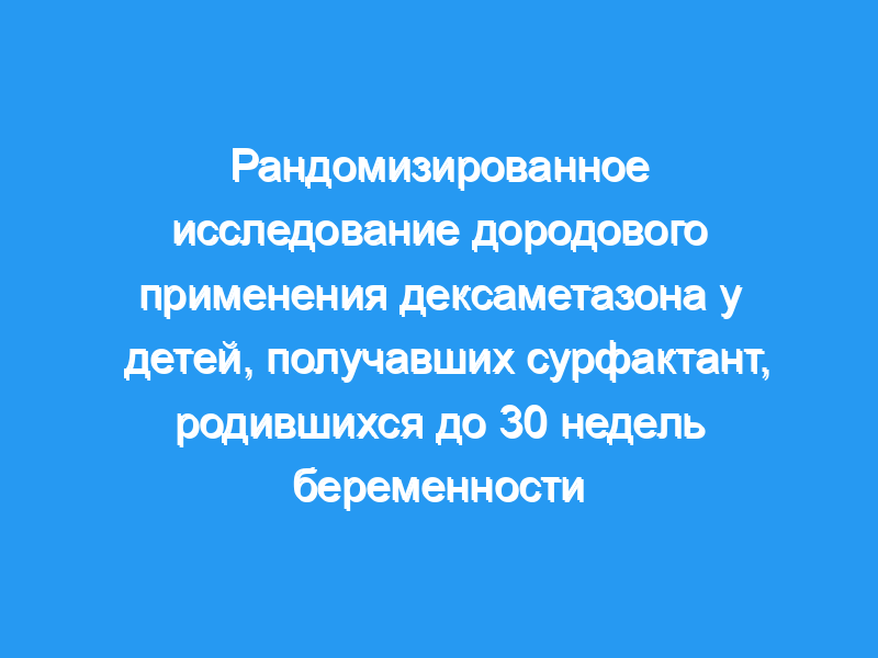 С апреля 1990 по июнь 1994 года проводилось рандомизированное двойное слепое исследование, в ходе которого женщинам с риском родов на сроке 24-29 недель давали дексаметазон (5 мг каждые 12 часов в общей сложности четыре дозы) или физиологический раствор. При рождении всем исследуемым младенцам вводили профилактическое сурфактантное вещество. Основными показателями результатов были частота и тяжесть РДС. Вторичные клинические конечные точки включали бронхолегочную дисплазию, пневмоторакс, открытый артериальный проток, некротизирующий энтероколит, ретинопатию, внутрижелудочковое кровоизлияние и смерть.