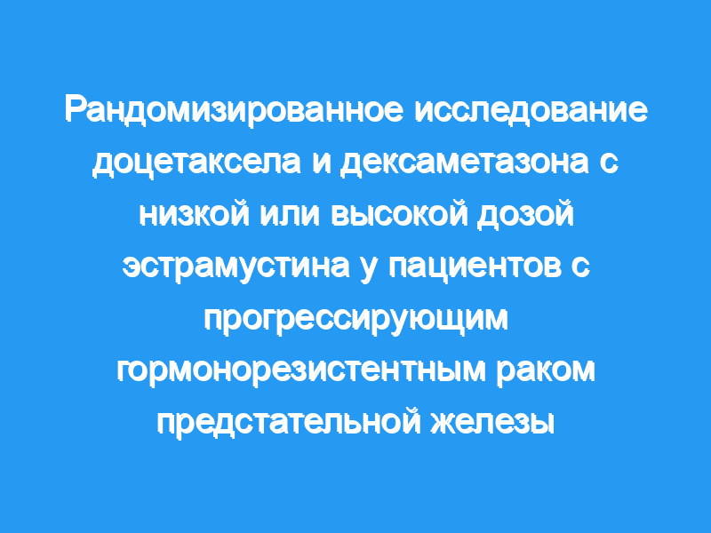 Чтобы протестировать комбинацию доцетаксела с двумя различными дозами эстрамустина у пациентов с гормонорезистентным раком предстательной железы (HRPC), улучшить показатели ответа и снизить побочные эффекты, поскольку химиотерапия на основе доцетаксела является все более популярным вариантом для мужчин с прогрессирующим HRPC, и отдельно или в сочетании с эстрамустином, доцетаксел улучшает среднюю выживаемость. Пациенты и методы: Всего 72 пациента с метастатическим HRPC были рандомизированы для получения доцетаксела (70 мг/м(2) внутривенно, на 2-й день каждые 21 день) и эстрамустина (3 х 280 мг/сут перорально, начиная за 1 день до доцетаксела, в течение 5 дней подряд) для arm A, или эстрамустин (3 х 140 мг/сут перорально, начиная за 1 день до доцетаксела, в течение 3 дней подряд) для руки B. Премедикацию пероральным дексаметазоном в общей суточной дозе 16 мг в разделенных дозах два раза в день вводили в руку А на 1-5-й день и в руку В на 1-3-й день. Первоначально было проведено шесть циклов. Химиотерапия была возобновлена после значительного повышения уровня простатспецифического антигена (ПСА). Пациенты находились под наблюдением на предмет любой измеримой реакции ПСА и токсичности.