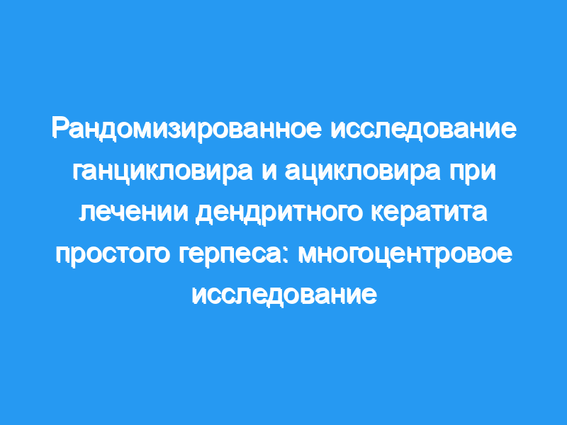 Это исследование было разработано для оценки относительной эффективности местного применения 0,15% геля ганцикловира и 3% мази ацикловира при лечении дендритного кератита простого герпеса.