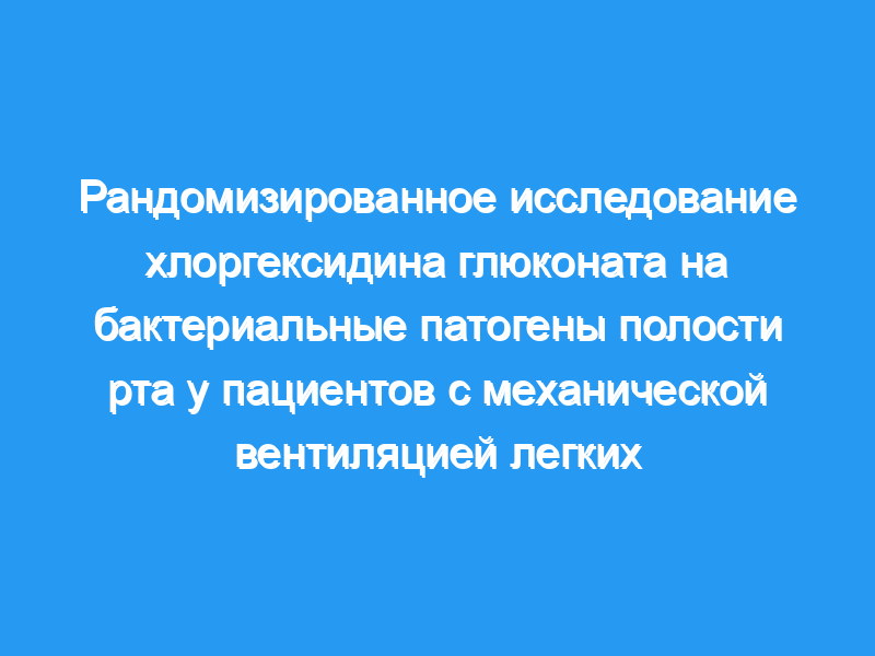 В рандомизированном двойном слепом плацебо-контролируемом клиническом исследовании было протестировано пероральное местное применение 0,12% хлоргексидина глюконата или плацебо (только носитель), применяемое один или два раза в день штатными медсестрами. Измеряли количественную колонизацию полости рта респираторными патогенами (зубы/зубной протез/слизистая оболочка щек).