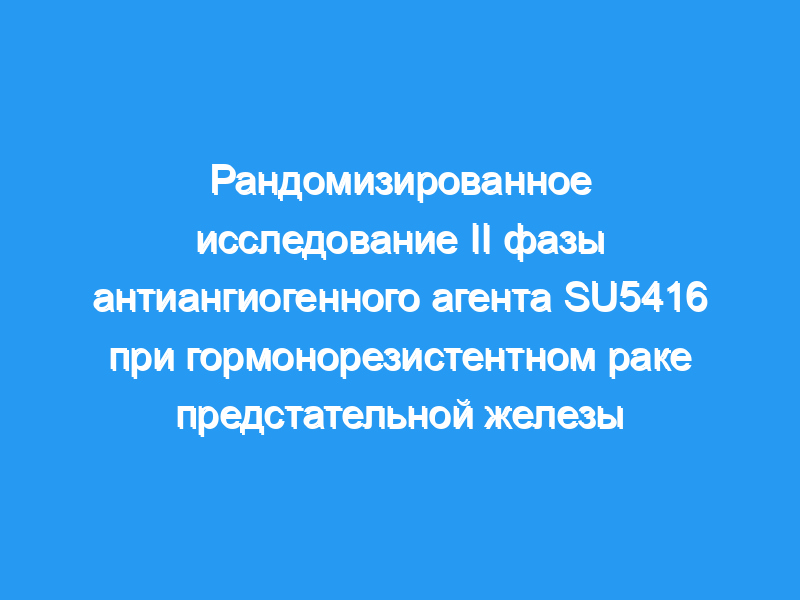 В этом небольшом исследовании не было обнаружено никаких модифицирующих заболевание эффектов SU5416. Умеренная токсичность, неудобный график введения и доступность других агентов, нацеленных на VEGFR, подтверждают решение прекратить дальнейшее изучение SU5416 при раке предстательной железы.