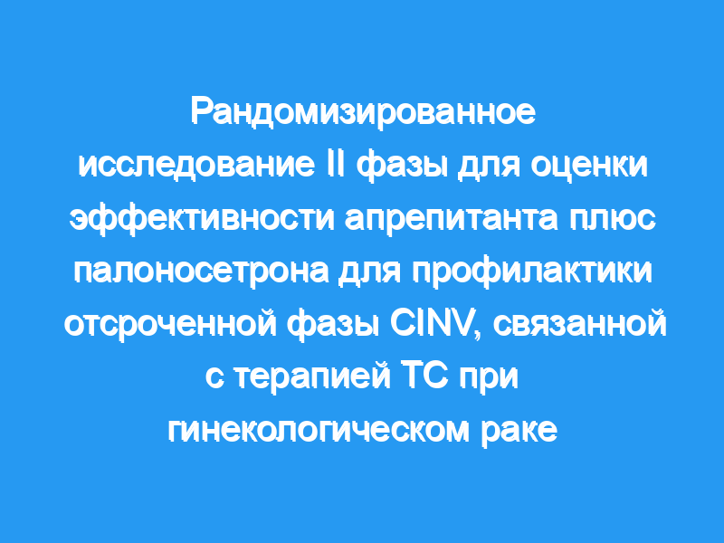 В период с ноября 2010 по март 2014 года 78 пациенток с гинекологическим раком, получавших терапию ТК, были рандомизированы на две группы: группу апрепитантов (вводили апрепитант, дексаметазон и палоносетрон) и контрольную группу (вводили дексаметазон и палоносетрон). Первичной конечной точкой исследования был полный ответ, определяемый как полное отсутствие рвотных явлений в отсроченной фазе.