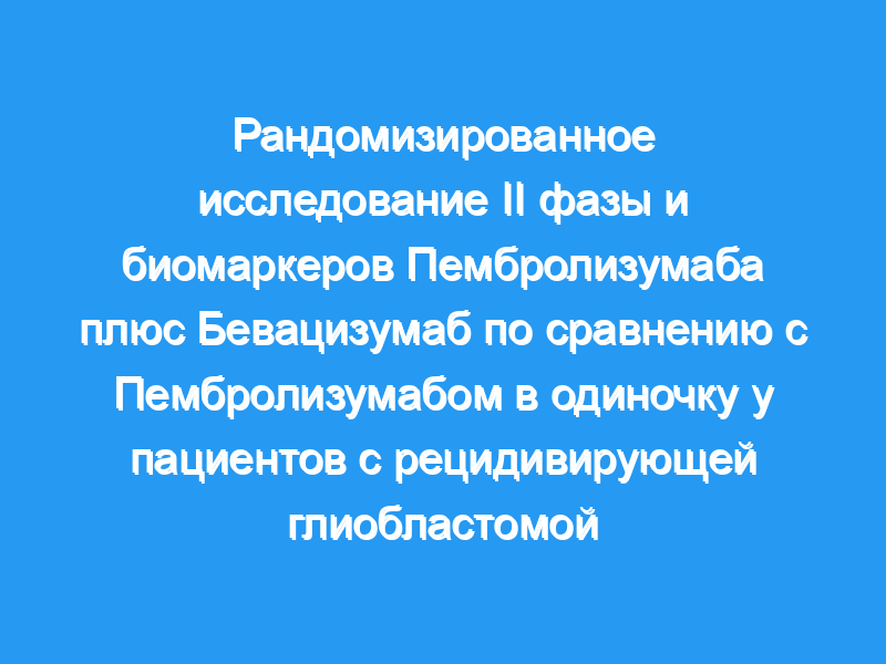 Пембролизумаб отдельно или в сочетании с бевацизумабом хорошо переносился, но приносил ограниченную пользу. Для когорты А PFS-6 составил 26,0% [95% доверительный интервал (ДИ) 16,3-41,5], медиана общей выживаемости (OS) составила 8,8 месяцев (95% ДИ 7,7-14,2), частота объективного ответа (ORR) составила 20%, а медиана продолжительности ответа составила 48 недели. Для когорты В PFS-6 составил 6,7% (95% ДИ 1,7-25,4), медиана OS составила 10,3 месяца (95% ДИ 8,5-12,5), а ORR составил 0%. Маркеры опухолевого иммунитета не были связаны с OS, но ухудшение OS коррелировало с исходным использованием дексаметазона и повышением VEGF плазмы крови после терапии (когорта A) и мутантного IDH1, неметилированного MGMT и повышением исходных уровней PlGF и sVEGFR1 (когорта B). НАНО-шкала внесла свой вклад в общую оценку результатов.