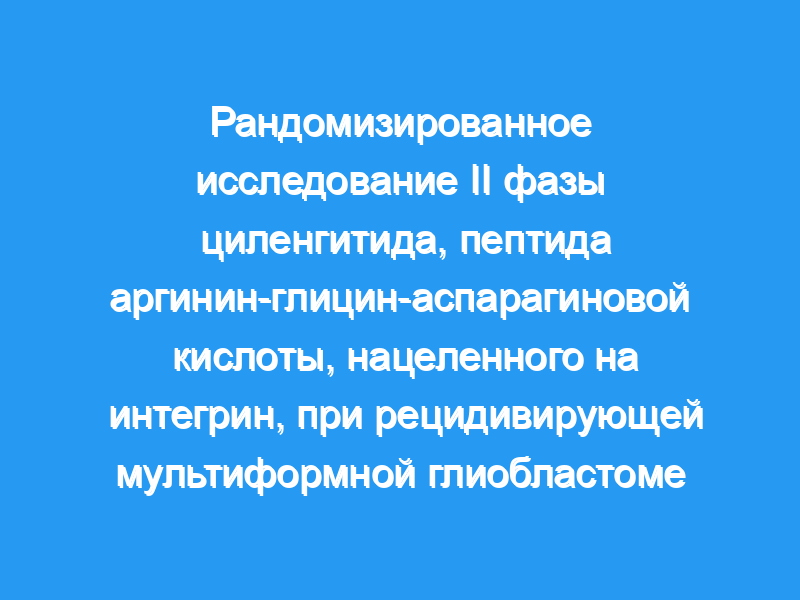 Циленгитид, ингибитор интегриновых рецепторов alphavbeta3 и alphavbeta5, продемонстрировал минимальную токсичность и длительную активность в широком диапазоне доз, вводимых взрослым с рецидивирующей мультиформной глиобластомой (GBM) в предыдущем исследовании I фазы. Текущее многоцентровое исследование II фазы было проведено для оценки активности и безопасности циленгитида у пациентов с ГБМ при первом рецидиве. Пациенты и методы: Подходящие пациенты были рандомизированы для получения либо 500, либо 2000 мг циленгитида два раза в неделю на постоянной основе. Пациентов осматривали каждые 4 недели. Первичной конечной точкой была 6-месячная выживаемость без прогрессирования (PFS). Вторичные конечные точки включали PFS, общую выживаемость (OS) и рентгенографический ответ, а также оценку качества жизни и фармакокинетики.
