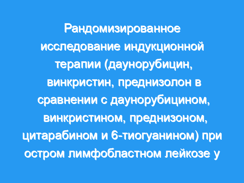 В этом исследовании ранее нелеченного острого лимфоцитарного лейкоза у взрослых (ОЛЛ), проведенном Eastern Cooperative Oncology Group, пациенты были рандомизированы для индукционной терапии либо ДВП (даунорубицин 45 мг/м2 ежедневно, дни 1, 2 и 3, преднизолон 60 мг/м2 ежедневно перорально 1-35 дней и винкристин 2 мг внутривенно в дни 1, 8, 15 и 22) или DATVP (даунорубицин 60 мг/м2 ежедневно, дни 1, 2 и 3, цитарабин 25 мг/м2 внутривенно болюсно, затем 200 мг/м2 ежедневно в виде непрерывной инфузии в дни 1-5, 6-тиогуанин 100 мг/м2 перорально каждые 12 ч в дни 1-5, винкристин 2 мг внутривенно в дни 1 и 8 и преднизолон 60 мг/м2/день перорально, дни 1-7. Пациенты, полностью ответившие на оба режима, получали одинаковую терапию после ремиссии, которая состояла из однократного курса цитарабина 3 г/м2, вводимого в течение 1 ч каждые 12 ч в дозе 12.