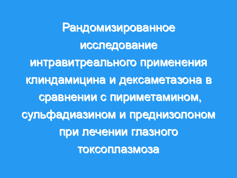 Сравнить эффективность интравитреального введения клиндамицина и дексаметазона с классическим лечением глазного токсоплазмоза. Дизайн: Проспективное рандомизированное клиническое исследование с одной маскировкой. Участники: в общей сложности 68 пациентов с активным глазным токсоплазмозом были случайным образом распределены на 2 группы лечения: 34 в группе интравитреального введения клиндамицина плюс дексаметазона (IVCD) и 34 в группе классического лечения (CT). Вмешательство: Группа IVCD получила от 1 до 3 инъекций 1 мг клиндамицина интравитреально и 400 мкг дексаметазона, а группа CT получила 6 недель лечения пириметамином и сульфадиазином плюс преднизолон. Антитела к антитоксоплазмозу (иммуноглобулин [Ig] M и IgG) определяли с помощью иммуноферментного анализа. Основные показатели результата: Изменения размера ретинохориоидального поражения, измеренные с помощью компьютерной программы, написанной в среде MATLAB, через 6 недель после начала лечения. Изменения остроты зрения (VA), воспалительная реакция стекловидного тела, побочные реакции на лекарственные средства и частота рецидивов были вторичными показателями исхода.
