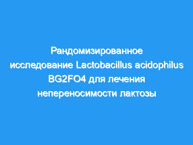 Это исследование было разработано, чтобы определить, приводит ли пероральное кормление Lactobacillus acidophilus BG2FO4 к состоянию толерантности к лактозе. Дизайн: Мы изучили 42 субъекта с непереносимостью лактозы, о которой они сами сообщили, и провели тесты на вдыхание водорода, чтобы определить, были ли они непереносимы лактозой. Субъектам с установленным нарушением переваривания лактозы (n = 24) было предложено случайным образом распределиться в группу, получавшую омепразол (гипохлоргидрат), или в группу, не получавшую омепразол, но 6 субъектов предпочли не участвовать. Все рандомизированные субъекты (n = 18) принимали Lactobacillus acidophilus BG2FO4 дважды в день в течение 7 дней, и были собраны образцы кала. Были проведены тесты на содержание водорода в дыхании и записаны оценки симптомов в исходном состоянии и после приема лактобацилл.
