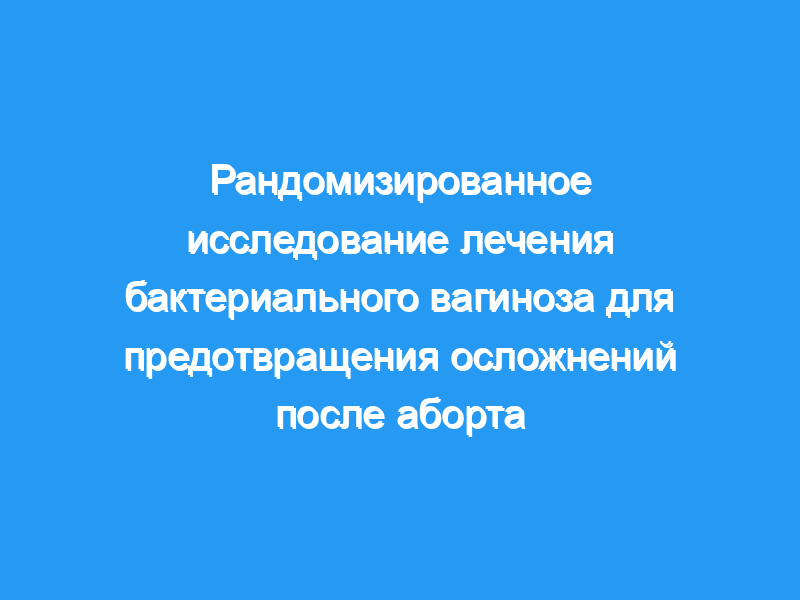 Оценить эффективность метронидазола для уменьшения послеабортных осложнений у женщин с бактериальным вагинозом. Дизайн: Рандомизированное двойное слепое плацебо-контролируемое исследование.