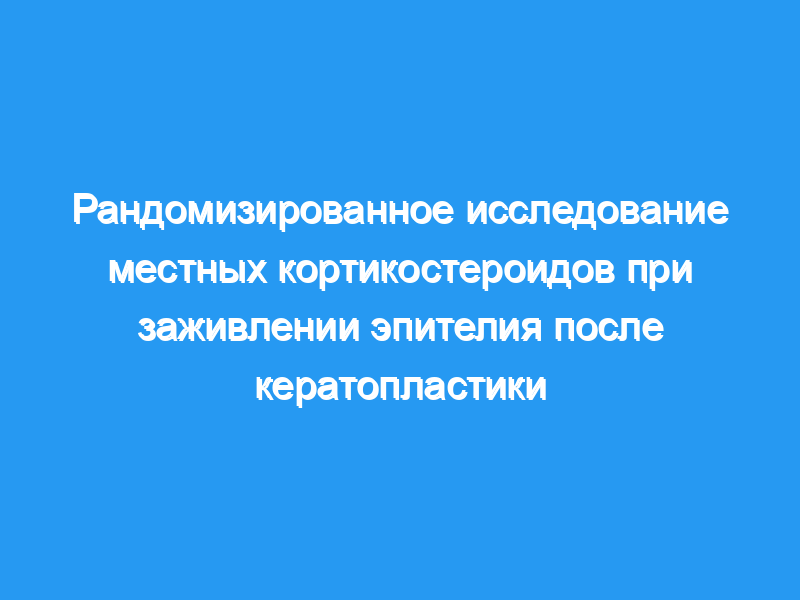 Проспективное рандомизированное исследование, оценивающее влияние местного применения 1% ацетата преднизолона на дефекты эпителия после кератопластики у 39 пациентов (18 в группе без лечения и 21 в группе лечения), не выявило каких-либо существенных различий в заживлении между двумя группами (р менее 0,16 до р менее 0,54 на послеоперационные дни 1-5). Среднее время, необходимое для полного заживления, составило 1,94 дня в группе без лечения и 2,81 дня в группе, получавшей стероиды (р менее 0,09). Пациенты, получавшие субконъюнктивальный метилпреднизолона натрия сукцинат, имели большие начальные дефекты (в среднем 33,5 мм2), чем те, кто не получал субконъюнктивальные стероиды (в среднем 16,1 мм2), но время полного заживления эпителия существенно не отличалось (2,75 дня против 1,91 дня, р менее 0,14). Поскольку клинически применяемые после кератопластики местные стероиды, по-видимому, не вызывают значительной задержки заживления эпителия у большинства пациентов.