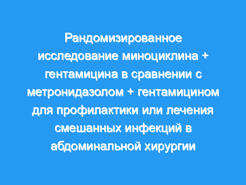 Семьдесят пациентов, поступивших на абдоминальную операцию, требующую краткосрочной периоперационной профилактики, были рандомизированы для получения миноциклина + гентамицина или метронидазола + гентамицина.