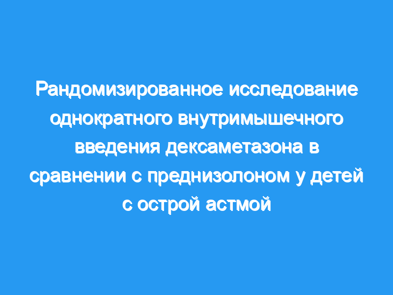 Мы провели проспективное рандомизированное исследование у детей в возрасте от 18 месяцев до менее 7 лет с астмой, которые обратились в ED с клинической оценкой астмы от 3 до 7 баллов по 9-балльной шкале. Дети были рандомизированы на 1 дозу внутримышечного дексаметазона (0,6 мг/кг, максимум 15 мг) или перорального преднизолона (2 мг/кг, максимум 50 мг) один раз в день в течение 5 дней. Первичным результатом, измеренным только для пациентов, выписанных из ЭД, было изменение показателя астмы от проявления ЭД до 4-дневного последующего обследования, которое оценивал врач, замаскированный под групповое назначение. Мы оценивали результаты вторичного клинического течения с помощью структурированного интервью через 4 и 14 дней. Восемьдесят восемь пациентов были соответствующим образом рандомизированы на дексаметазон и 93 — на преднизолон. Характеристики группы были аналогичны на исходном уровне. Среди тех, кто был выписан из ED, 62 (90%) из 69 и 64 (90%) из 74 пациентов в группах дексаметазона и преднизолона, соответственно, были повторно обследованы через 4 дня на предмет первичного результата. Среднее изменение общего показателя астмы при 4-дневном наблюдении составило 3,6 в группе дексаметазона и 3,4 в группе преднизолона (разница 0,2, 95% доверительный интервал от -0,4 до 0,7). Из пациентов, первоначально выписанных, 5,9% пациентов с дексаметазоном и 4,1% пациентов с преднизолоном были госпитализированы до 2-недельного наблюдения (разница 1,8%, 95% доверительный интервал от -5,4% до 9,0%).