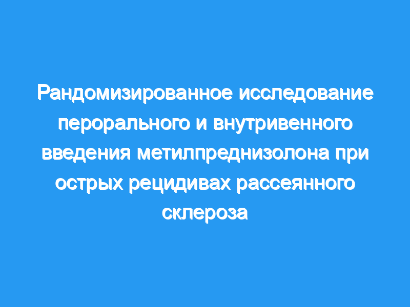 42 пациента с клинически определенным рецидивом рассеянного склероза получали метилпреднизолон перорально, а 38 — внутривенно. Клинические измерения при поступлении и через 1 неделю, 4 недели, 12 недель и 24 недели включали расширенную шкалу статуса инвалидности Куртцке (EDSS), амбулаторный индекс Хаузера и индекс функции руки. Основным критерием исхода была разница между двумя группами лечения в одной или нескольких степенях EDSS через 4 недели. Результаты: Не было никаких существенных различий между двумя группами на любом этапе исследования в любом измерении: средняя разница в EDSS через 4 недели (с поправкой на исходный уровень) была на 0,07 балла больше у тех, кто принимал пероральные стероиды (95% ДИ -0,46 — 0,60). Наиболее оптимистичным результатом внутривенной терапии является среднее улучшение EDSS менее чем на половину по сравнению с пероральным лечением. Интерпретация: Поскольку наше исследование не показало каких-либо явных преимуществ внутривенного режима, мы пришли к выводу, что предпочтительнее назначать пероральные, а не внутривенные стероиды при острых рецидивах рассеянного склероза по соображениям удобства пациента, безопасности и стоимости.