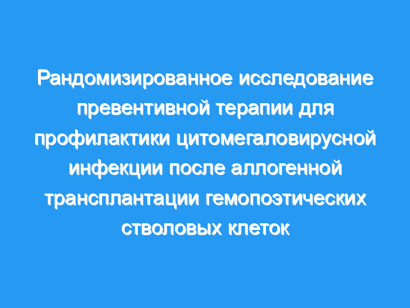 Мы изучили эффективность двух различных доз ганцикловира для профилактики цитомегаловирусной инфекции (ЦМВ) у реципиентов аллогенной трансплантации гемопоэтических стволовых клеток (ТГСК).