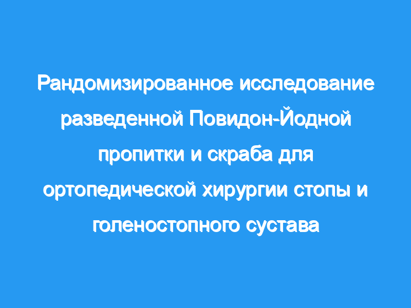 В этом проспективном рандомизированном контролируемом исследовании 242 пациента, перенесших ортопедическую операцию на стопе и голеностопном суставе, были рандомизированы в одну из 2 групп. Контрольная группа получала наш стандартный 2-этапный антисептический препарат для кожи в виде спиртового скраба (этап 1) с последующей хлоргексидиновой/спиртовой краской (этап 2). Группа вмешательства получила 3-минутное замачивание в разведенном повидон-йоде и скраб, за которым последовала та же стандартная 2-этапная подготовка кожи. Непосредственно перед разрезом кожи были взяты культуральные мазки из ногтевой складки hallux обеих групп.