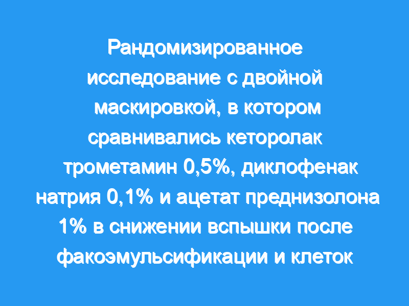 Кеторолак трометамин 0,5% и диклофенак натрия 0,1% могут быть столь же эффективными и безопасными, как и ацетат преднизолона 1%, в борьбе с воспалением после удаления катаракты.