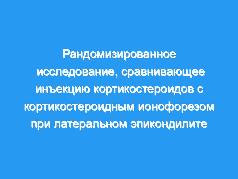 Дексаметазон с помощью ионофореза давал кратковременные преимущества, поскольку для этой группы сила захвата и неограниченное возвращение к работе были значительно лучше. Это исследование предполагает, что этот метод ионофореза для доставки кортикостероидов может рассматриваться как вариант лечения пациентов с латеральным эпикондилитом. Тип исследования/уровень доказательности: Терапевтический II.