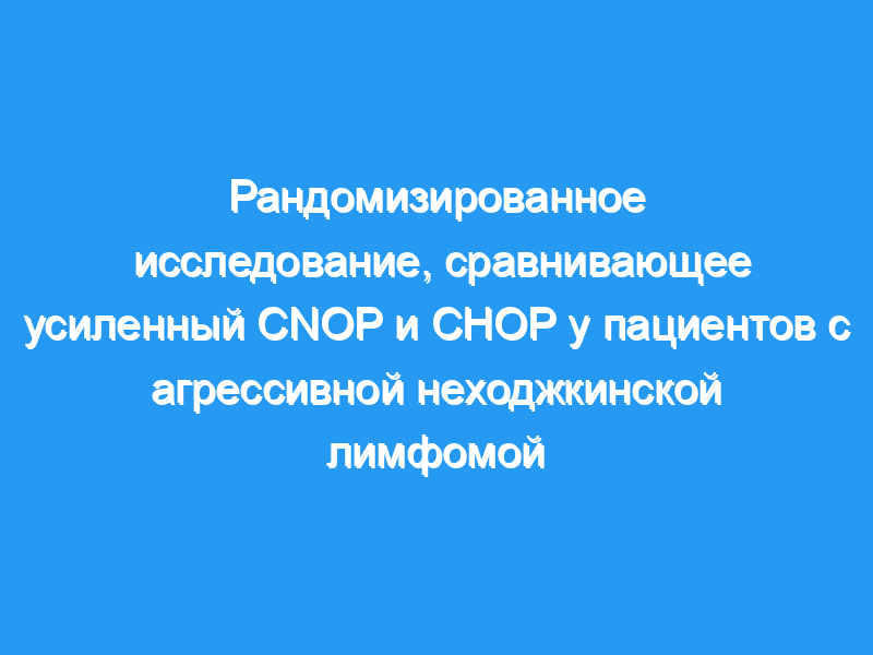 Это исследование было разработано для сравнения эффективности увеличенной дозы митоксантрона с эффективностью стандартного доксорубицина, используемого в CHOP. режим у пациентов с АНХЛ. Сто сорок три подходящих пациента с АНХЛ были рандомизированы для получения 6 циклов либо CHOP (n = 71), либо усиленного CNOP (iCNOP) (n = 72), с митоксантроном 20 мг/м2, внутривенно, 1 раз в день вместо доксорубицина.