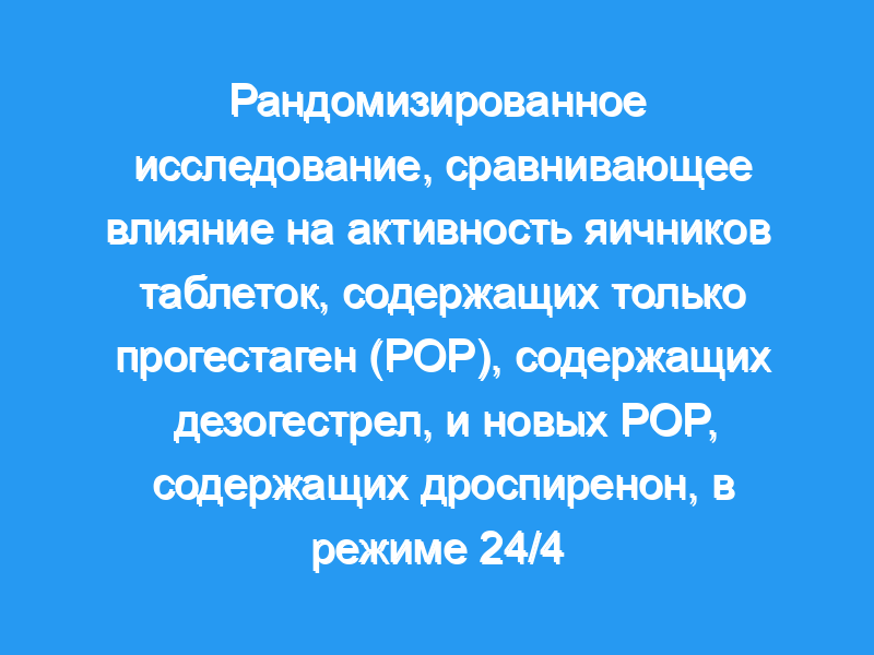 Новые таблетки, содержащие только дроспиренон, подавляли овуляцию так же эффективно, как таблетки, содержащие только дезогестрел, несмотря на 4-дневный интервал без гормонов.