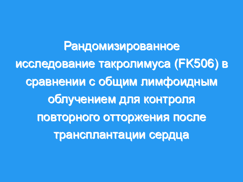Мы сравнили лечение такролимусом с общим облучением лимфоидной ткани у 13 реципиентов трансплантата сердца, получавших циклоспорин, азатиоприн и преднизолон, у которых наблюдалось повторное отторжение.