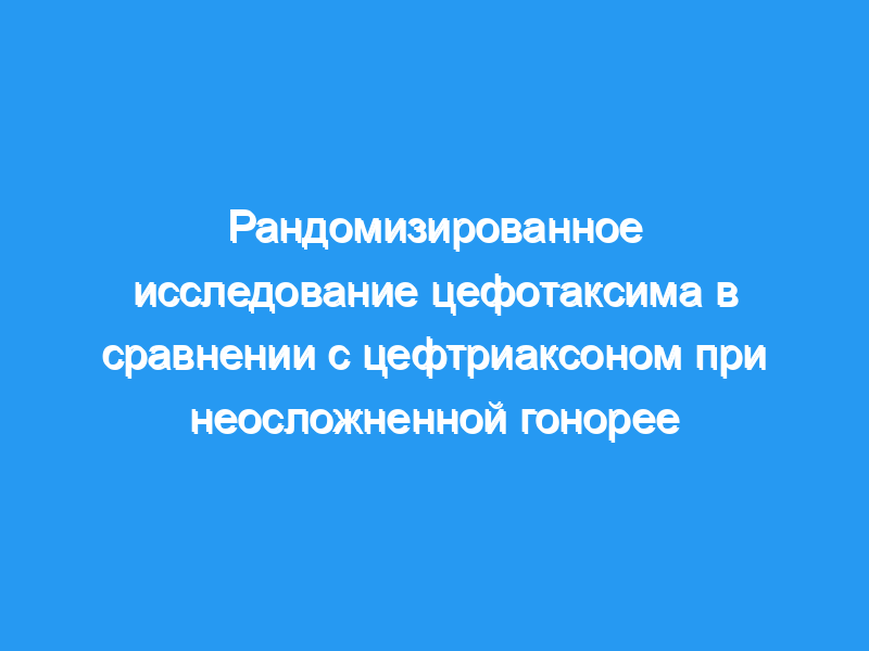 Мы провели открытое рандомизированное исследование для оценки эффективности, безопасности и влияния на стоимость более низкой дозы (500 мг) цефотаксима по сравнению с 250 мг цефтриаксона, часто рекомендуемого для лечения неосложненной гонореи.