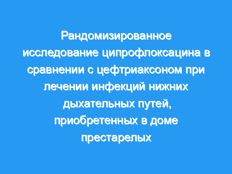 Сравнить эффективность и безопасность ципрофлоксацина и цефтриаксона у пациентов с инфекциями нижних дыхательных путей, приобретенными в домашних условиях, требующими первичной госпитализации. Дизайн: Проспективное рандомизированное исследование.