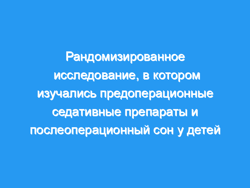 Было обнаружено, что мидазолам оказывает благотворное влияние на тревожность у детей в предоперационных условиях. В предыдущих исследованиях изучалось различное послеоперационное поведение детей, но в небольшом количестве исследований изучалось влияние предоперационного применения мидазолама на послеоперационный сон. Целью данного исследования было сравнить послеоперационный сон у детей в зависимости от предоперационного приема седативных препаратов. Дизайн: Это исследование представляло собой 2-групповое рандомизированное контролируемое исследование.