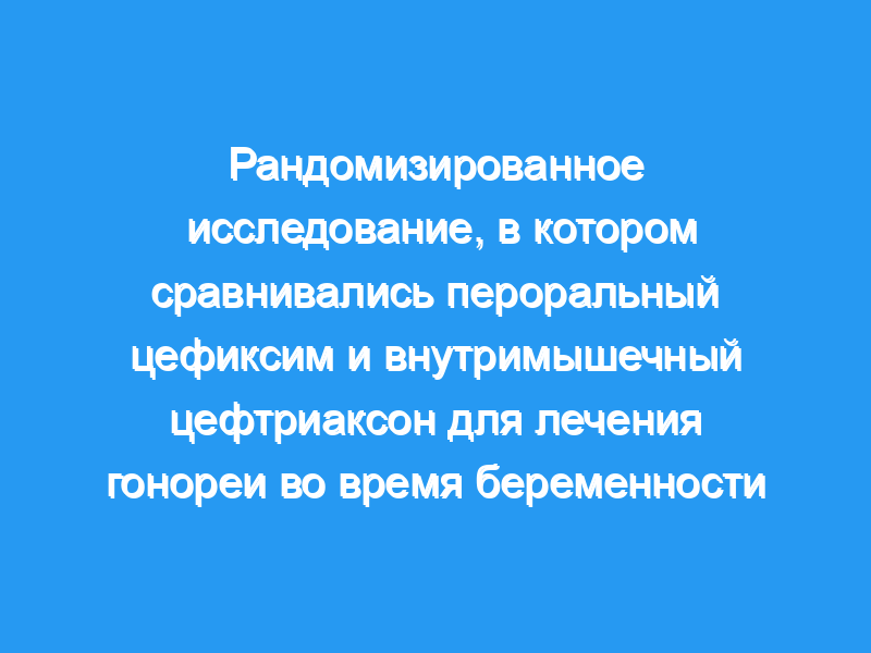 Целью этого исследования была перспективная оценка рекомендаций Центров по контролю и профилактике заболеваний по лечению гонококковой инфекции во время беременности. План исследования: Сто шестьдесят одна женщина, которая была направлена с вероятной эндоцервикальной гонореей, прошла предварительную обработку эндоцервикальных, анальных и оральных культур на Neisseria gonorrhoeae. Женщины были рандомизированы для приема цефтриаксона в дозе 125 мг внутримышечно или цефиксима в дозе 400 мг перорально. Лечение было открытым и в соотношении 1:1. Всего было обследовано 95 пациентов. Испытания лечебных культур проводили через 4-10 дней после обработки. У восьмидесяти шести женщин (91%) была эндоцервикальная инфекция, у 39 женщин (41%) была анальная инфекция и у 11 женщин (12%) была инфекция глотки. Пятьдесят из 95 женщин (53%) имели сопутствующую эндоцервикальную хламидийную инфекцию. Общая эффективность составила 91 из 95 пациентов (95,8%, 95% ДИ, 89,6%-98,8%). Цефтриаксон был эффективен в 41 из 43 случаев (95%, 95% ДИ, 84,2%-99,4%), а цефиксим был эффективен в 50 из 52 случаев (96%, 95% ДИ, 86,8%-99,5%). Не было отмечено существенной разницы в общей эффективности или в зависимости от места заражения. Три из 4 женщин, которые столкнулись с неудачами в лечении, признались в незащищенном половом акте до проведения теста на культуру лечения.