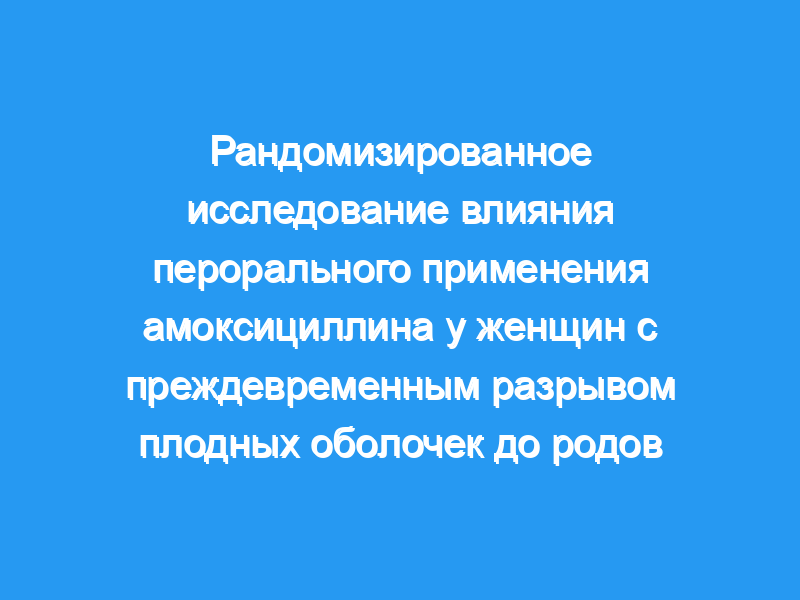 Сто шесть беременных женщин в третьем триместре беременности с преждевременным разрывом плодных оболочек были рандомизированы на пероральный прием амоксициллина по 0,75 г 3 раза в день (n = 50) или плацебо (n = 56) в слепом исследовании.
