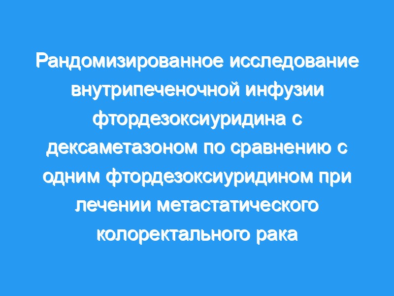 Для снижения токсичности печеночного артериального фтордезоксиуридина (FUDR), вводимого с помощью инфузионной помпы (Shiley Infusaid, Inc., Норвуд, Массачусетс), 50 пациентов с метастазами в печени от колоректального рака были выбраны случайным образом для получения FUDR в дозе 0,3 мг/кг/сут в течение 14 из 28 дней с или без общей дозы 20 мг дексаметазона в печеночных артериях в течение 14 из 28 дней.