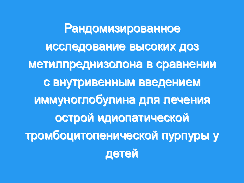 Идиопатическая тромбоцитопеническая пурпура (ИТП) — это приобретенное заболевание, характеризующееся иммуноопосредованным разрушением тромбоцитов. Авторы провели проспективное рандомизированное исследование, в котором сравнивали внутривенное введение иммуноглобулина (IVIG) с внутривенным введением метилпреднизолона в высоких дозах при лечении детей с острой ИТП. Основной целью исследования было сравнение скорости увеличения количества тромбоцитов, вызванного любым вмешательством. Решение о лечении принималось на основании клинической картины, а не произвольного количества тромбоцитов. В целом, у включенных в исследование пациентов наблюдались обширные кровоподтеки и количество тромбоцитов менее 10 × 10/л (10 000/мкл). Пациенты и методы: Были обследованы семьдесят семь последовательных пациентов, для которых лечащий гематолог определил необходимость срочного лечения. Сорок два пациента получали внутривенное введение (1 г/кг/доза х2), а 35 — метилпреднизолон (30 мг/кг/доза х3). Пациенты, у которых наблюдалось увеличение количества тромбоцитов более чем на 50 000/мкл после первой внутривенной дозы или второй дозы метилпреднизолона, не получали вторую внутривенную дозу или третью дозу метилпреднизолона соответственно. Возраст пациентов варьировался от 6 месяцев до 15 лет. Количество тромбоцитов оценивали при предъявлении, через 24, 48, 72 часа, через 1 неделю и через 2-4 недели.