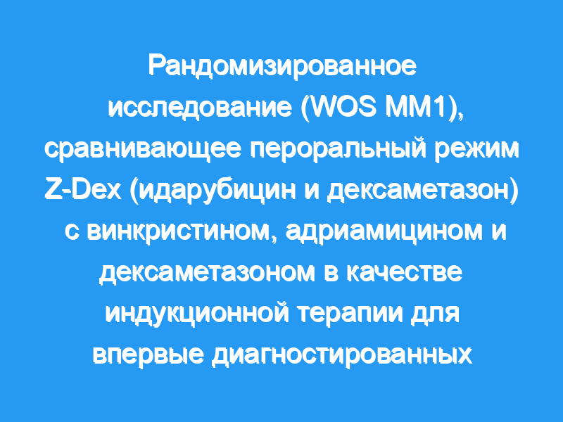 Было показано, что пероральный режим Z-Dex (идарубицин и дексаметазон). чтобы быть эффективным в ММ. Мы провели рандомизированное исследование, в котором сравнивали Z-Dex с VAD в качестве индукционной терапии у недавно диагностированного пациента с ММ.