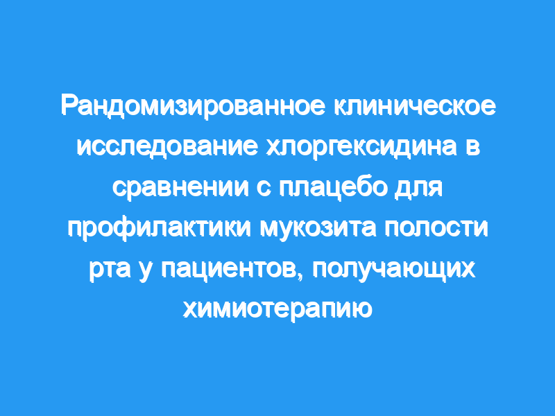 Цель/задачи: Проверить эффективность инициированной медсестрой программы систематического обучения гигиене полости рта — PRO-SELF: Mouth Aware (PSMA) — в сочетании с двумя ополаскивателями для рта (0,12% хлоргексидин или стерильная вода) в профилактике вызванного химиотерапией мукозита полости рта. Дизайн: Рандомизированное, двойное слепое, плацебо-контролируемое клиническое исследование. Условия: 23 амбулаторные клиники и офисные практики в Калифорнии. Выборка: 222 пациента, которые начинали курс химиотерапии, вызывающей мукозит. Метод: Участники наблюдались в течение трех циклов химиотерапии. Всем пациентам была предоставлена программа PSMA. Случайное назначение жидкости для полоскания рта произошло до развития мукозита полости рта. Исследователи использовали Руководство по оценке полости рта для ежемесячной оценки полости рта пациентов (с циклами химиотерапии пациентов) и когда пациенты сообщали о каких-либо изменениях полости рта между циклами. Основные переменные исследования: тип жидкости для полоскания рта, частота, дни до начала и тяжесть вызванного химиотерапией мукозита полости рта. Результаты: Не было существенных различий между двумя полосканиями для рта в отношении частоты, дней до начала и тяжести мукозита.