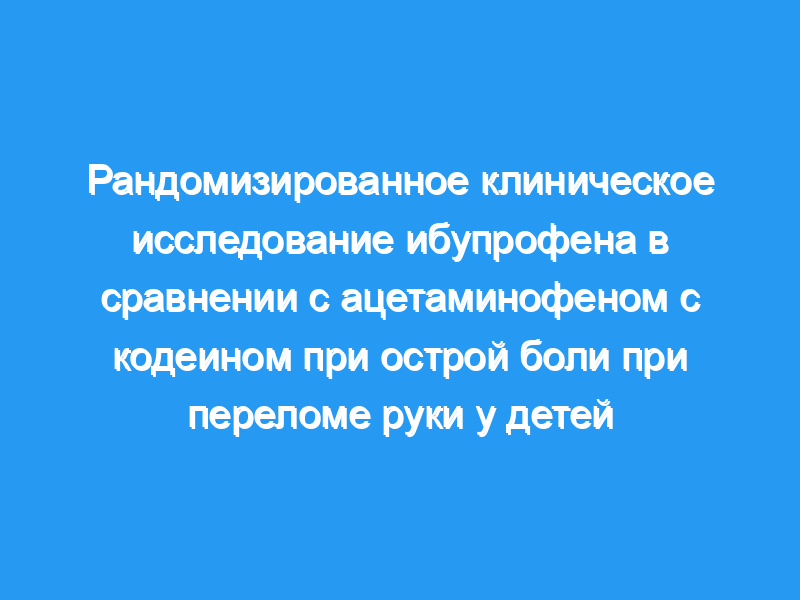 Ибупрофен был по меньшей мере столь же эффективен, как ацетаминофен с кодеином, для амбулаторной анальгезии у детей с переломами рук. Не было никакой существенной разницы в показателях анальгетической недостаточности или боли, но у детей, получавших ибупрофен, были лучшие функциональные результаты. У детей, получавших ибупрофен, было значительно меньше побочных эффектов, и как дети, так и родители были более удовлетворены ибупрофеном. Ибупрофен предпочтительнее ацетаминофена с кодеином для амбулаторного лечения детей с неосложненными переломами рук.